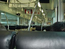 出雲横田行き木次線552D(キハ120単行)は、出発時なんと30人もの乗客が乗っていた!1両のキハ120、しかもオールロングシートの1番台、ロングシートにずらーっと人が30人並んだ状態で油木、三井野原と進む列車。こんなことはもはや二度とないかもしれぬ・・・。三井野原〜出雲坂根間のおろちループへ好眺望が開けるところでは、運転士も乗客は観光客と見てほとんど止まりそうなほど減速して進む。乗客も一斉に進行方向左の窓にくっつき、感嘆の声を上げる。スイッチバックを楽しみ、延命水に喜ぶ団体さん。しかし、八川を過ぎたあたりからはしゃぎ疲れたのか退屈なのか、あちらこちらで寝モードに入る人が出てくる。剛毅な人はロングシートの上で横になる。神経の細い人はまだ横田にも着かないのに「宍道はまだかねえ」など言う。キハ120に観光客が乗ることを想定しろとはよう言わないが、オールロングシートでは風景に目をやることも仲間と談笑することも難しい。ローカル線へのオールロング車導入はやはりいただけない。