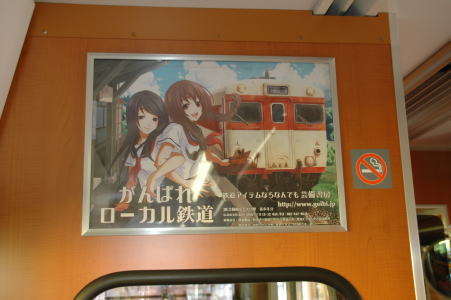 | ローカル鉄道は、乗って応援するのがベストです。 しかし鉄道運賃は比較的低廉であり、何度も足を運ぶのは遠方の路線だと難しい。 そこで、広告出稿で応援という手を考えました。 広告内容は何でも良いのです。ここでは萌絵のポスターを提案していますが、掲出先の規定の範囲内で、ご自身の写真作品を掲示するも良く、普通に商業広告するも良く、その路線への愛を表現するも良く、意見広告、文芸作品、一発ネタなど、どんなことでも良いのです。 ここのコンテンツでは、掲出内容の一例として「ローカル鉄道応援ポスター」を紹介するとともに、鉄道各社の広告料金など、あなたが個人広告を掲出される時に参考になる情報をご提供します。 |