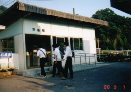 1,夕方の戸坂駅の駅舎。手前は家路につく城北の学生。