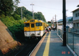 3,上の写真とは逆に、三次方より撮影。2855D。J北生らが乗り込む。ホームの電柱は古めかしい木製。