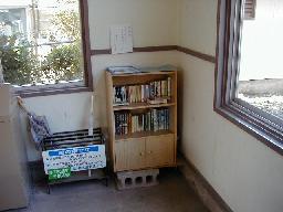 駅舎の片隅には本棚があり、自由に読むことが出来る。ジャンルは歴史小説となぜか教育書に偏っている。今後は安芸矢口企画も微力ながら支援させていただくつもり。